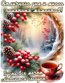 Теги:добрый день, день, чашка чая, шишки, снег, пожелания на каждый день, осень, зима, про мечты