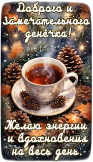 Теги:добрый день, день, чай, чашка чая, шишки, лес, сосна, осень, снег, зима, пожелания на каждый день