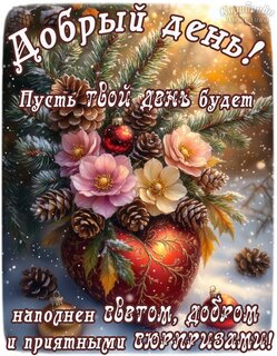 Теги:добрый день, день, цветы, сердечко, зима, снег, пожелания на каждый день, шишки, про сюрпризы, про добро, лес