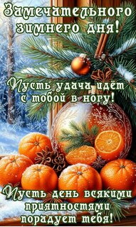 Замечательного зимнего дня! Пусть удача идёт с тобой в ногу! Пусть день всякими приятностями порадует тебя!