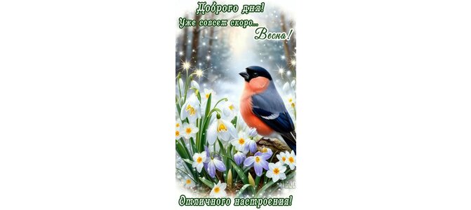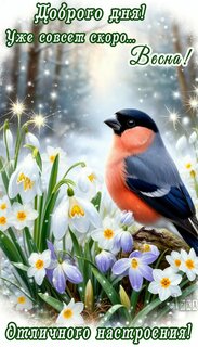 Теги:добрый день, день, зима, снег, цветы, снегирь, птица, лес, красивая картинка, пожелания на каждый день, про настроение, скоро весна, добра