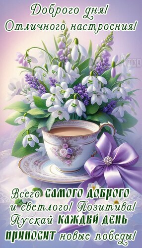Доброго дня! Отличного настроения! Всего самого доброго и светлого! Позитива! Пускай каждый день приносит новые победы!