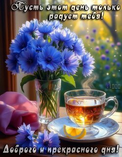 Теги:добрый день, чай, цветы, васильки, весна, лето, красивая картинка, пожелания на каждый день, прекрасного дня, пусть этот день радует тебя, лмион