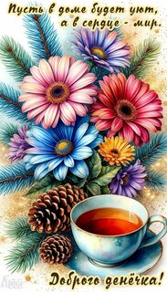 Теги:добрый день, чай, шишки, цветы, герберы, красивая картинка, уюта в доме, в сердце мира, пожелания на каждый день