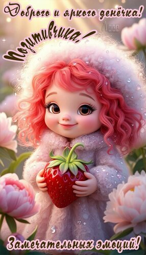 Теги:добрый день, клубничка, девочка, цветы, весна, пионы, замечательных эмоций, пожелания на каждый день, доброго и яркогоденечка, позитива