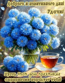 Теги:добрый день, день, чай, чашка чая, цветы, букет цветов, васильки, приятных сюрпризов, удачи, позитива, добра, пожелания на каждый день, красивая картинка