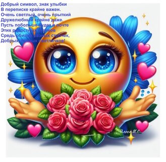 Открытка "Добрый символ, знак улыбки в переписке крайне важен. Очень светлый, очень прыткий, дружелюбный крайне"