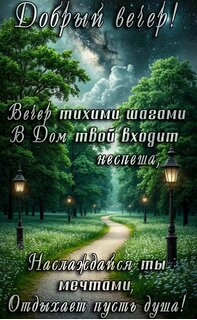 Bечер тихими шагами в дом твой входит неспеша. Наслаждайся ты мечтами, отдыхает пусть душа!