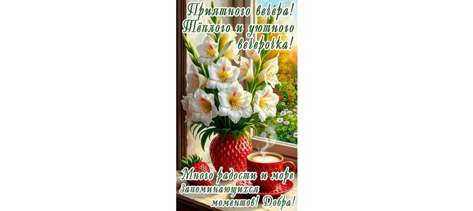 Приятного вечера! Тёплого и уютного вечерочка! Много радости и море запоминающихся моментов! Добра!