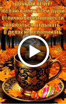 Добрый вечер! Желаю вам от всей души, отлично вечер провести. Улыбаться, отдыхать, о делах не вспоминать.