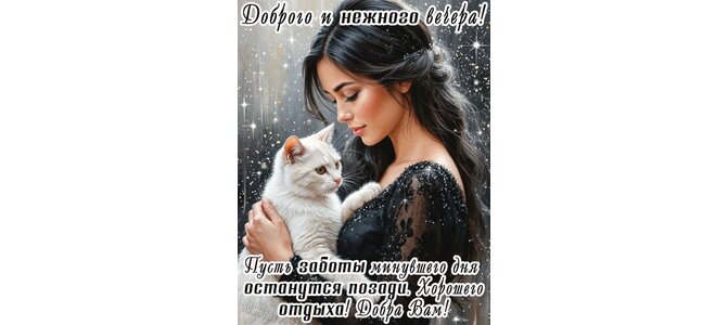 Теги:добрый вечер, вечер, девушка, кошка, девушка с кошкой, котенок, пожелания на каждый день, пушистое, нежность, белое и черное