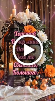 Пусть этот вечер будет сказкой, В любви пройдет и понимании, Окутает заботой, лаской, Терпеньем, трепетом, вниманием. Хороший вечер лишь начало Чего-то светлого, большого. Желаю, чтоб всегда звучало «Люблю тебя» из уст родного.