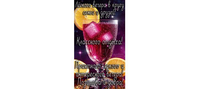 Легкого вечера в кругу семьи и друзей! Классного отдыха!