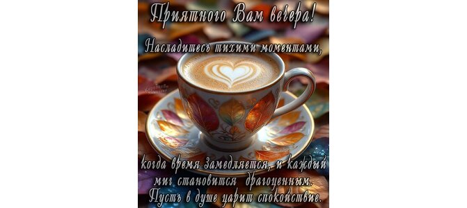 Приятного вам вечера! Насладитесь тихими моментами, когда время замедляется, и каждый миг становится драгоценным. Пусть в душе царит спокойствие.