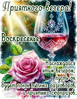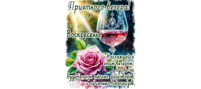 Теги:добрый вечер, вечер, розы, вино, пожелания на каждый день, дни недели, воскресенье