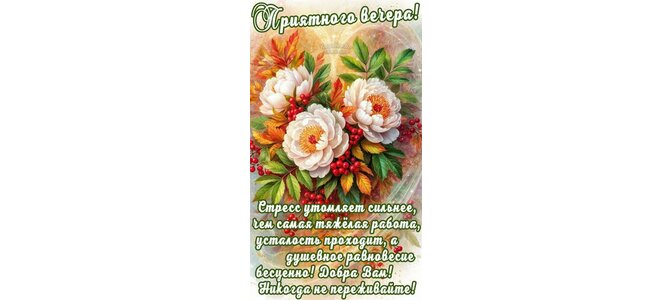 Теги:добрый вечер, вечер, сердечко, осень, цветы, пионы, ягоды, пожелания на каждый день, мотивация, цитата, про стресс, про жизнь
