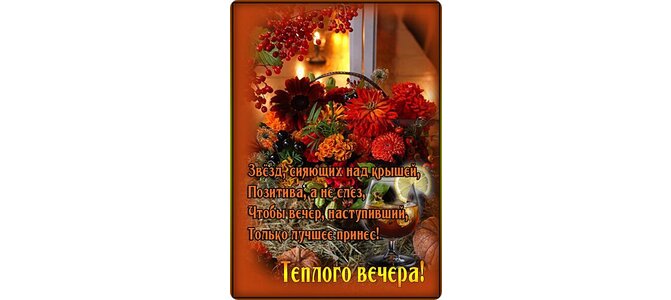 Звёзд, сияющих над крышей, позитива, а не слез, чтобы вечер, наступивший, только лучшее принес! Теплого вечера!