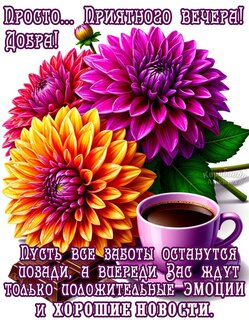 Просто... Добра! Приятного вечера! Пусть все заботы останутся позади, а впереди вас ждут только положительные эмоции и хорошие новости.
