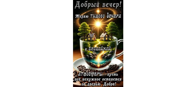 Теги:добрый вечер, вечер, пожелания на каждый день, кофе, хорошего вечера