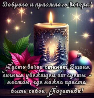 Доброго и приятного вечера! Пусть вечер станет вашим личным убежищем от суеты – местом, где можно просто быть собой. Позитива!