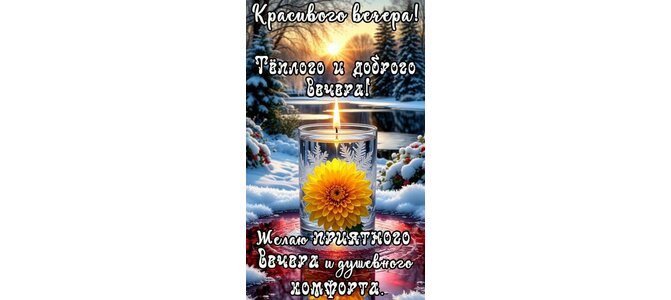 Красивого вечера! Тёплого и доброго вечера! Желаю приятного вечера и душевного комфорта!