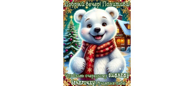 Теги:добрый вечер, вечер, мишка, елка, новый год, снег, зима, позитив, пожелания на каждый день