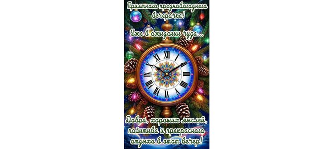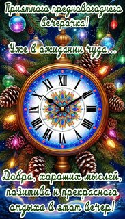 Теги:добрый вечер, вечер, часы, елка, новый год, с наступающим новым годом, новогодние игрушки, пожелания на каждый день, зима
