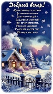 Добрый вечер! День скрылся за лесами, за темными горами, за быстрою рекой - за дальней стороной! Уж вечер наступает, огни все зажигают, с оконцев льется свет, печалям места нет.