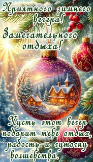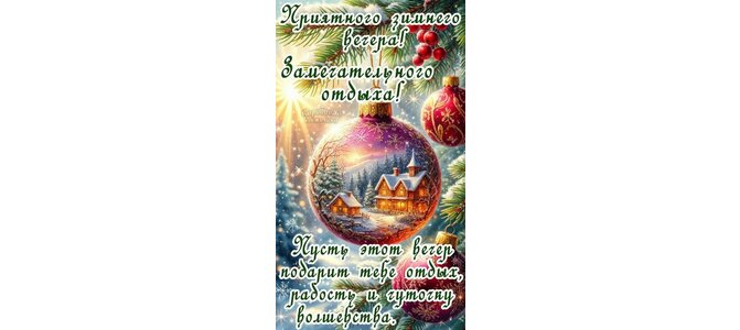 Приятного зимнего вечера! Замечательного отдыха! Пусть этот вечер подарит тебе отдых, радость и чуточку волшебства.