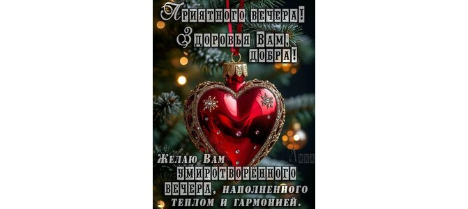 Теги:добрый вечер, вечер, позитив, елка, зима, снег, новогодняя игрушка, сердечко, хорошего вечера, здоровья, красивая картинка, пожелания на каждый день