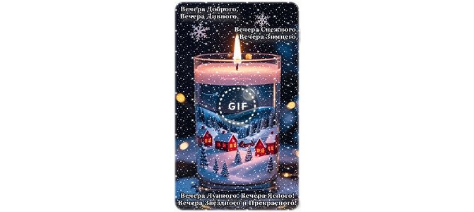 Вечера доброго, вечера дивного, вечера снежного, вечера зимнего, вечера лунного, вечера ясного! Вечера звездного и прекрасного!