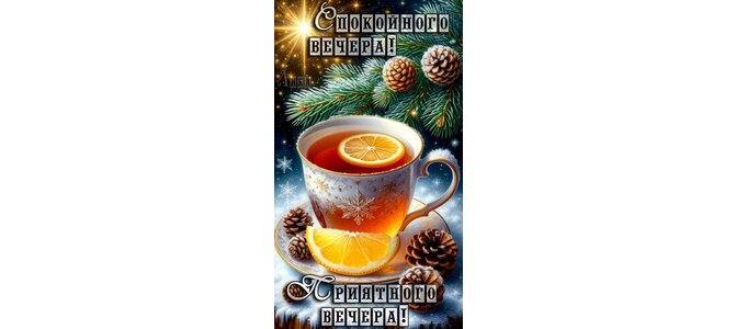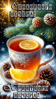 Теги:добрый вечер, вечер, чашка чая, лимон, зима, снег, красивая картинка, пожелания на каждый день, чай, шишки, елка, спокойного вечера, приятного вечера