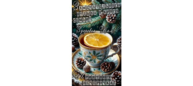 Теги:добрый вечер, вечер, чашка чая, чай, лимон, елка, снег, зима, пожелания на каждый день, красивая картинка, шишки, здоровья, добра