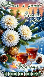 Теги:добрый вечер, вечер, чай, чашка чая, снег, елка, зима, цветы, красивая картинка, пожелания на каждый день, шишки, хорошего вечера, здоровья и добра
