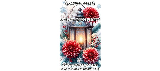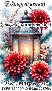 Теги:добрый вечер, вечер, цветы, фонарь, зима, елка, ель, снег, снежикни, пожелания на каждый день, добра и здоровья, тепла и нежности, красивая картинка