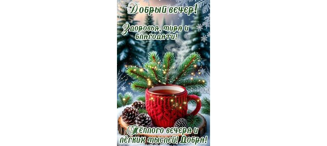 Теги:добрый вечер, вечер, позитива, красивая картинка, чай, шишки, зима, снег, ель, добра, благодати, здоровья, теплого вечера