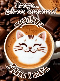 Теги:добрый вечер, вечер, кофе, чашка кофк, шоколад, красивая картинка, пожелания на каждый день, тишины и покоя, позитива, котенок