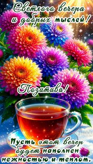 Теги:добрый вечер, вечер, чай, чашка чая, позитив, нежности, тепла, уюта, светлых мыслей, добра, цветы, красивая картинка, пожелания на каждый день