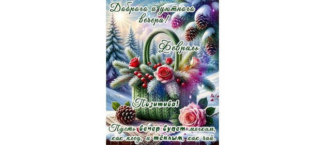 Теги:добрый вечер, вечер, цветы, розы, дамская сумочка, снег, зима, шишки, лес, красивая картинка, пожелания на каждый день