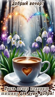 Теги:добрый вечер, вечер, кофе, чашка кофе, цветы, лес, пожелания на каждый день, добра, тишины для души, сердечко, красивая картинка