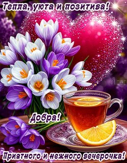 Теги:добрый вечер, вечер, середечко, цветы, красивая картинка, чай с лимоном, рукты, пожелания на каждый день, приятного и нежного вечера, добра, весна