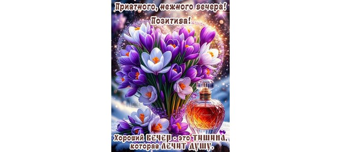 Теги:добрый вечер, вечер, духи, цветы, красивая картинка, крокусы, пожелания на каждый день, тишины и покоя, нежного вечера, позитива