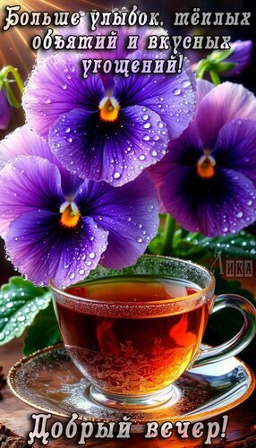 Теги:добрый вечер, вечер, чай цветы, пожелания на каждый день, улыбок, теплых объятий, нежного вечера, вкусных угощений, красивая картинка