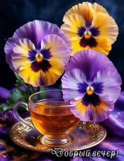 Теги:добрый вечер, цветы, фиалки, чай, гифка, анимация, красивая анимация, пожелания на каждый день, сердечки
