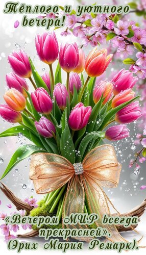 Теги:добрый вечер, вечер, цветы, тюльпаны, пожелания на каждый день, красивая картинка, цитата, мотивация, вечером мир прекрасней