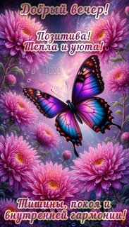 Теги:добрый вечер, вечер, цветы, бабочка, тишины, покоя, внутренней гармонии, астры, позитива, тепла и уюта, пожелания на каждый день
