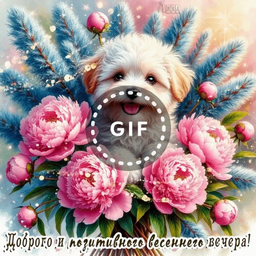 Теги:добрый вечер, вечер, щенок, цветы, пионы, верба, гифка, анимация, красивая анимация, пожелания на каждый день, позитивного вечера, весна