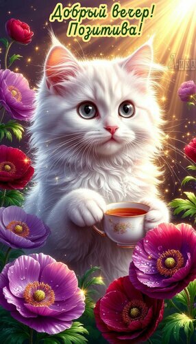 Теги:добрый вечер, позитива, вечер, белая кошка, пушистик, милота, позитивачай, цветы, анемоны, пожелания на каждый день, красивая картинка
