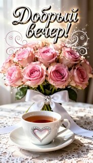 Теги:добрый вечер, вечер, чай, цветы, розы, красивая картинка, пожелания на каждый день, сердечко