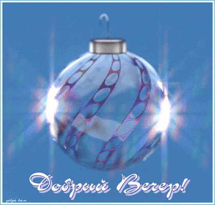 Новогодний шар крутится и сверкает. Подпись на открытке "Добрый вечер!"